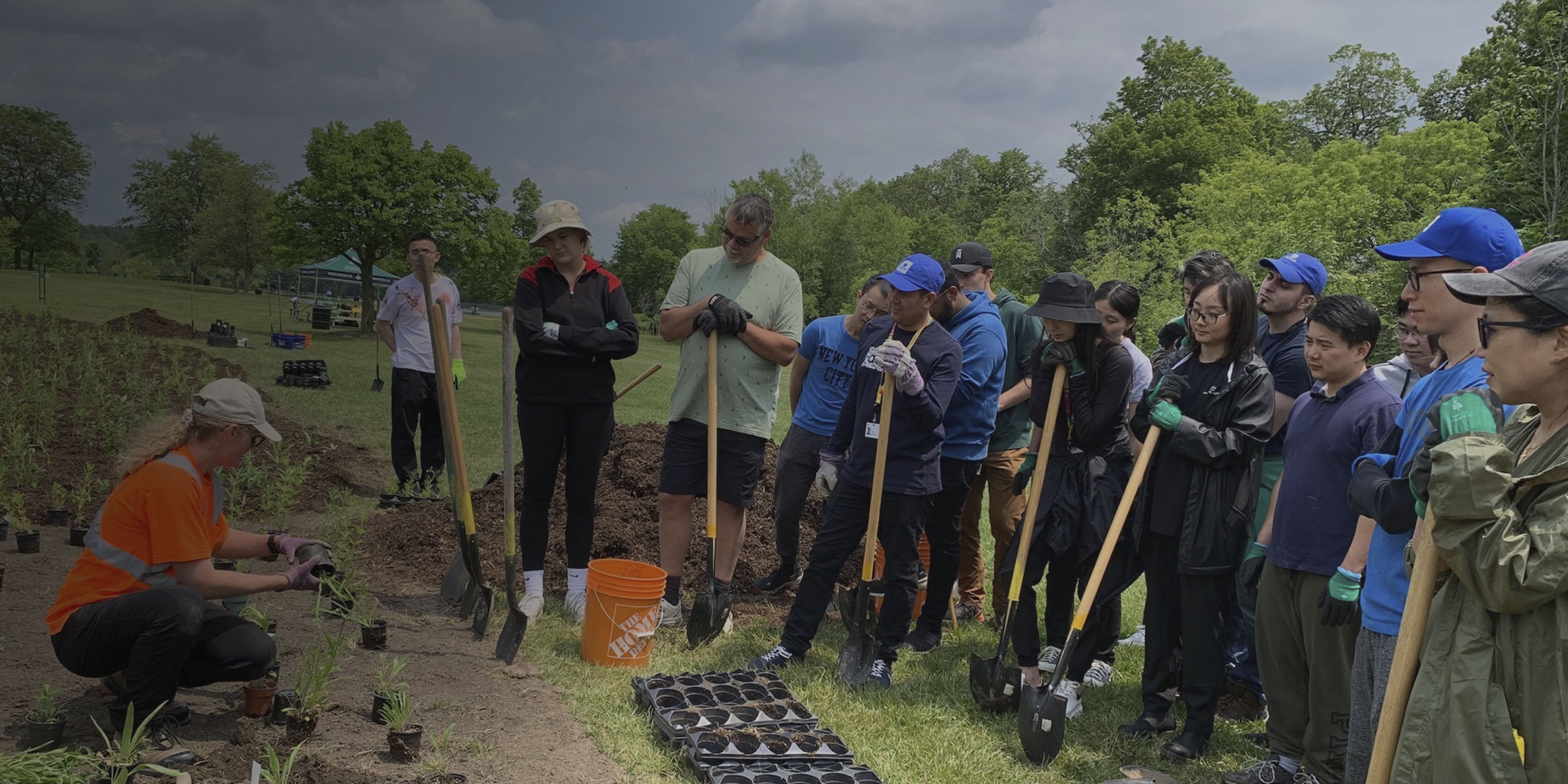 0:54 Gwen: We got there about 9:40 am. When we arrived, a lovely lady from Tree Canada, Rebecca I believe her name was, demonstrated for us how to properly do it.